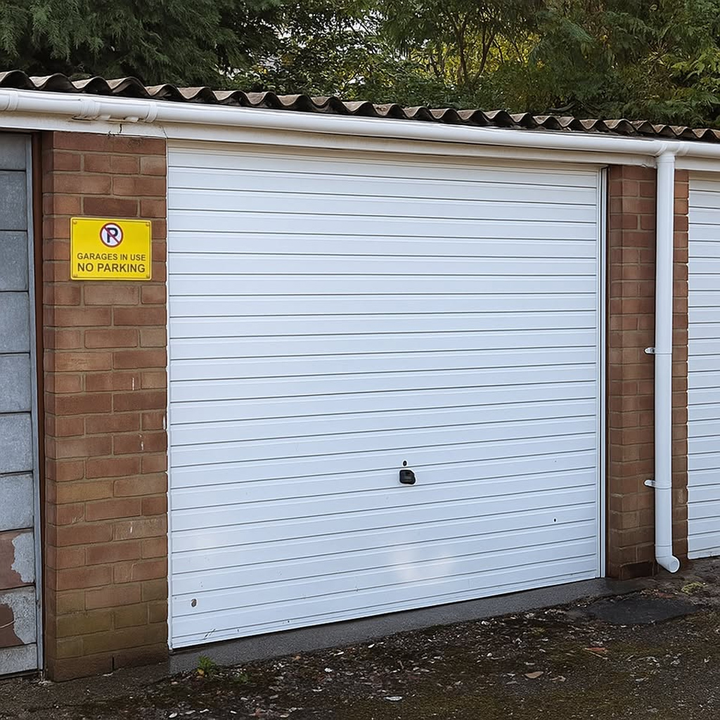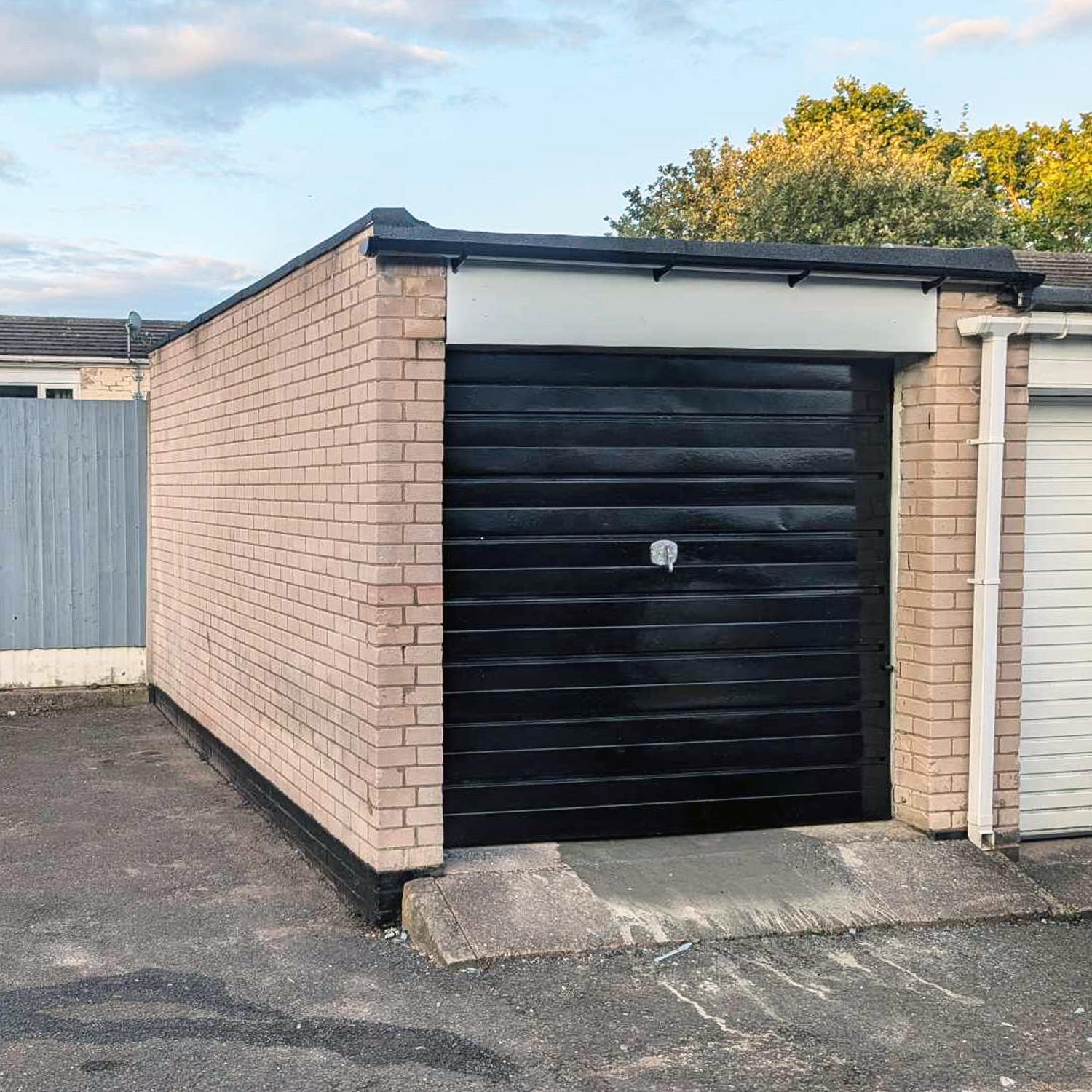 This garage has just undergone a refurbishment, including a roof repair and new guttering.